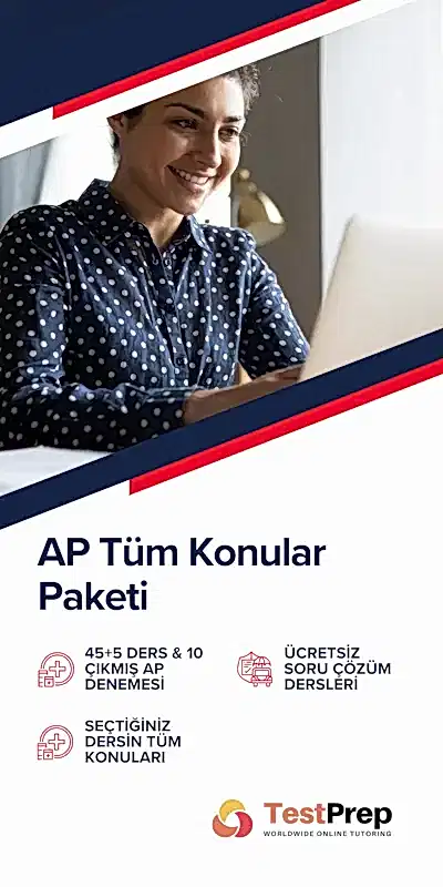 Advanced Placement, lisede karşılaşabileceğiniz en zor derslerden bazılarını sunar. Ayrıca, yılda yalnızca bir kez uygulandıkları için sınav gününde en iyi şekilde performans göstermeye hazır olmalısınız. Test Prep AP özel ders programları, ders materyalini derinlemesine inceleyerek sınavda test edilecek kavramları temel bir şekilde anlamanıza ve sınıfta öğrendiklerinizi pekiştirmenize yardımcı olur. Test Prep’in deneyimli AP eğitmenlerinin size AP sınavlarına girmeniz, olağanüstü üniversite başvuruları göndermeniz için gereken avantajı sunmasına izin verin. Siz de sınavlardan 5 alarak hayallerinizdeki okullara kabul alın.